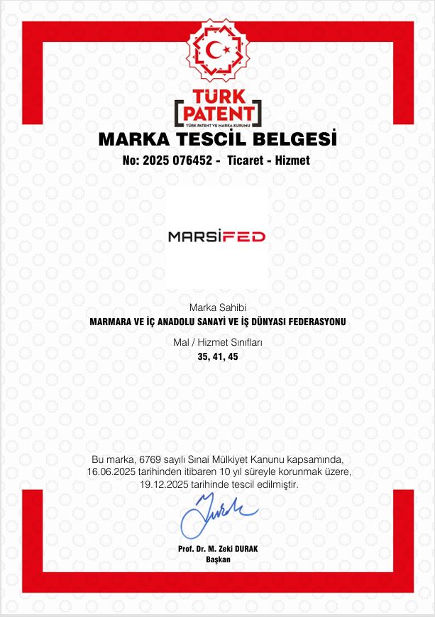 Marmara ve İç Anadolu Sanayi ve İş Dünyası Federasyonu (MARSİFED) olarak, kurumsal kimliğimizi ve marka değerimizi güvence altına alan önemli bir adımı daha tamamlamış bulunuyoruz.